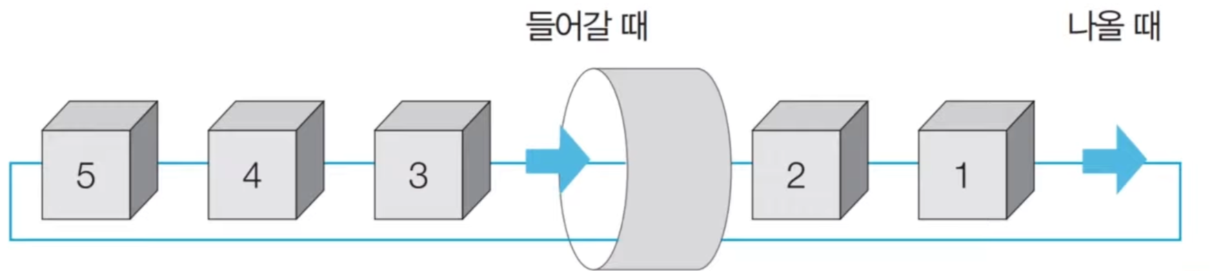 어떠한 자료(data)가 위 그림처럼 왼쪽으로 들어와서 오른쪽으로 나가는 자료구조를 의미한다.