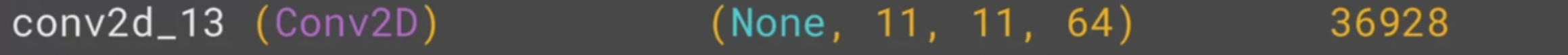 - Line 02: 첫번째 Convolution은 Keras가 64개의 필터를 생성하라고 요청하고 그 필터는 3x3으로 요청한다. 그리고 활성함수(activation function)은 relu를 사용하며 이것은 음수가 나오면 0으로 처리하는거다. 참고로 위에 정의한 64 필터의 값은 무작위값이 아니다. 각 필터들은 keras에 기존에 설정된 매우 잘 알려진 필터 세트를 시작으로 이 세트에서 작동하는 필터들은 점차적으로 학습이 되는것이다.