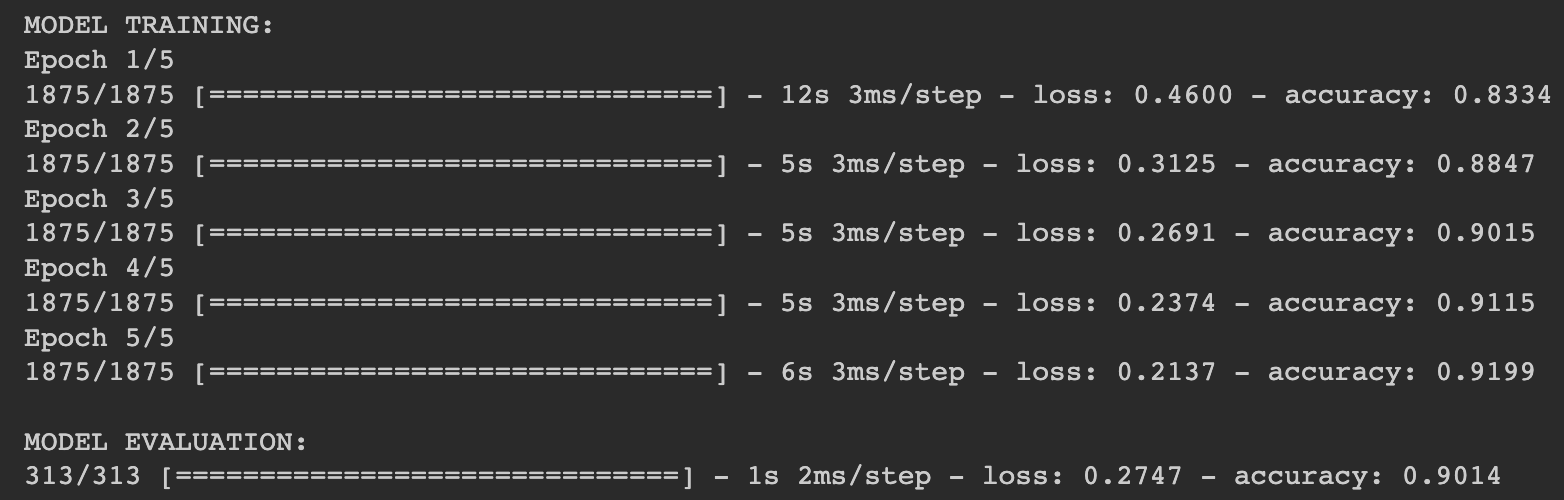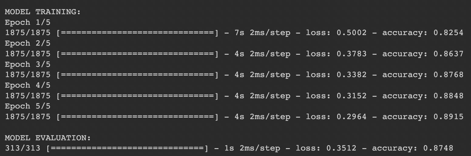 model.fit(training\_images, training\_labels, epochs=5)
