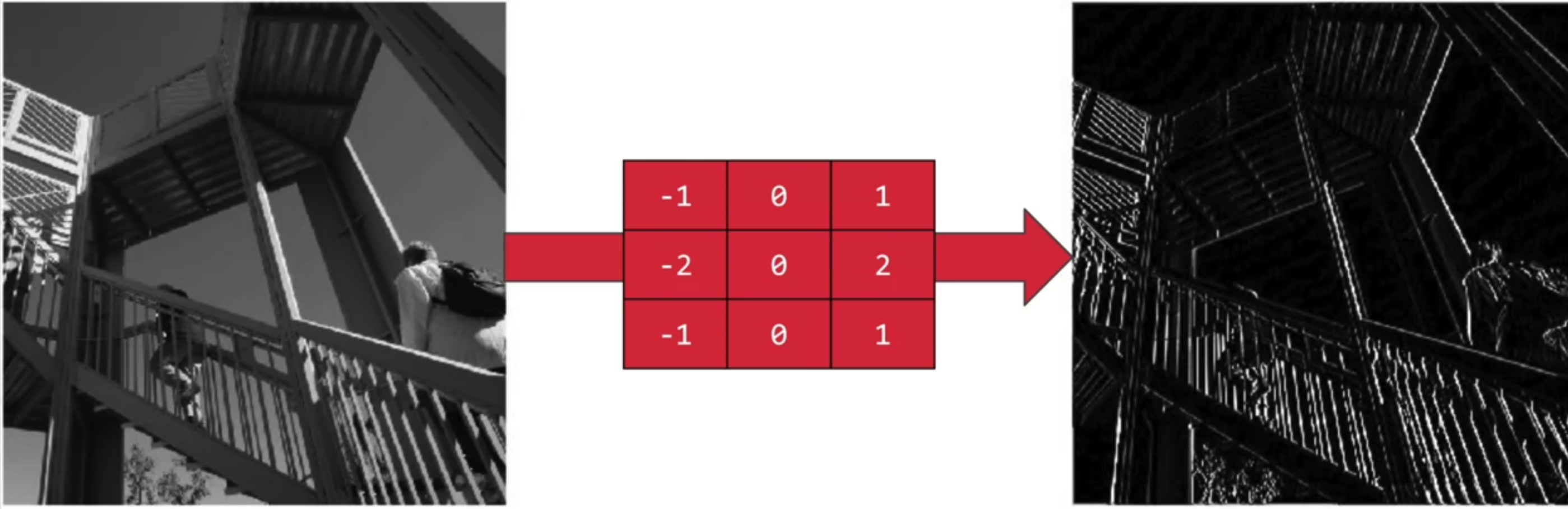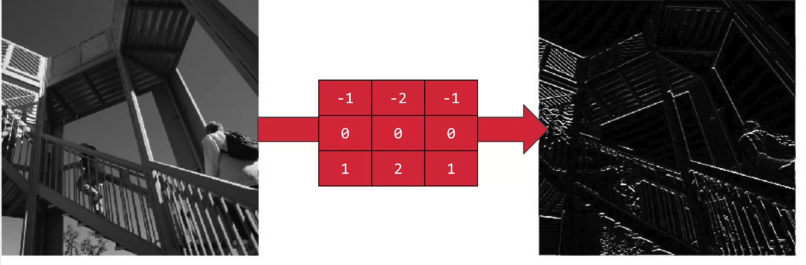 필터는 우리가 흔히 생각하듯 걸러내는 작업이다. 위 필터의 예시를 보자. vertical 필터 예시 경우 왼쪽 이미지에서 모든 픽셀들에 대해 filter를 거치면 세로 선만 추출하며, 그 밑 예시 또한 가로선만 추출하는 것을 볼 수 있다.
